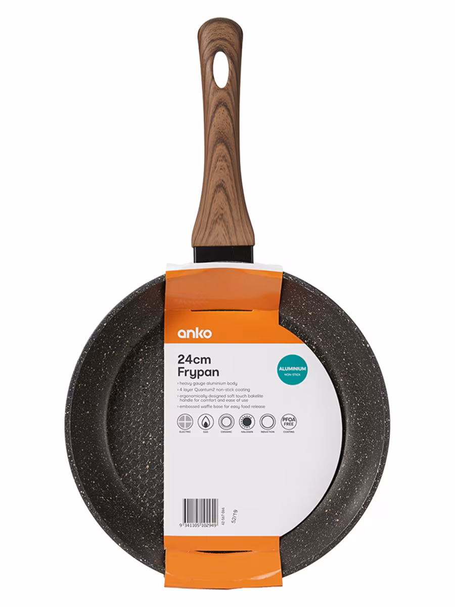 - Wood look soft touch handle