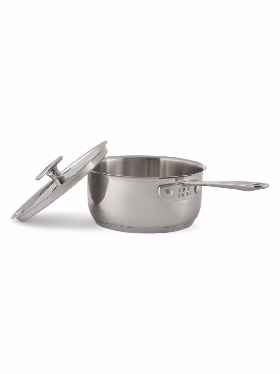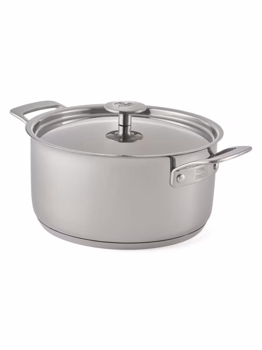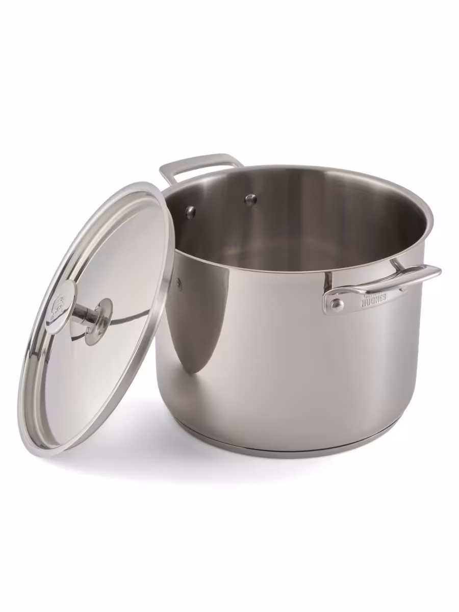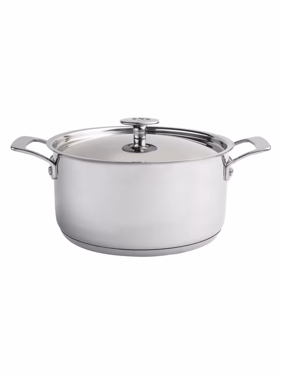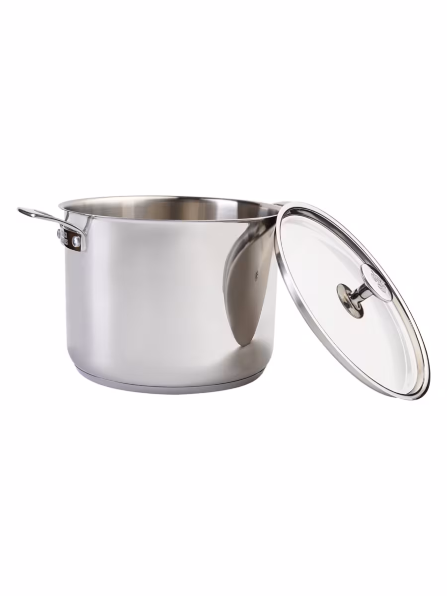 - Tight-fitting, stainless steel lid with polished exterior