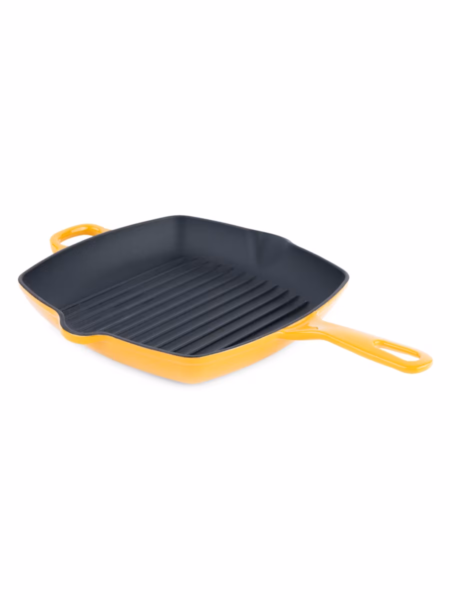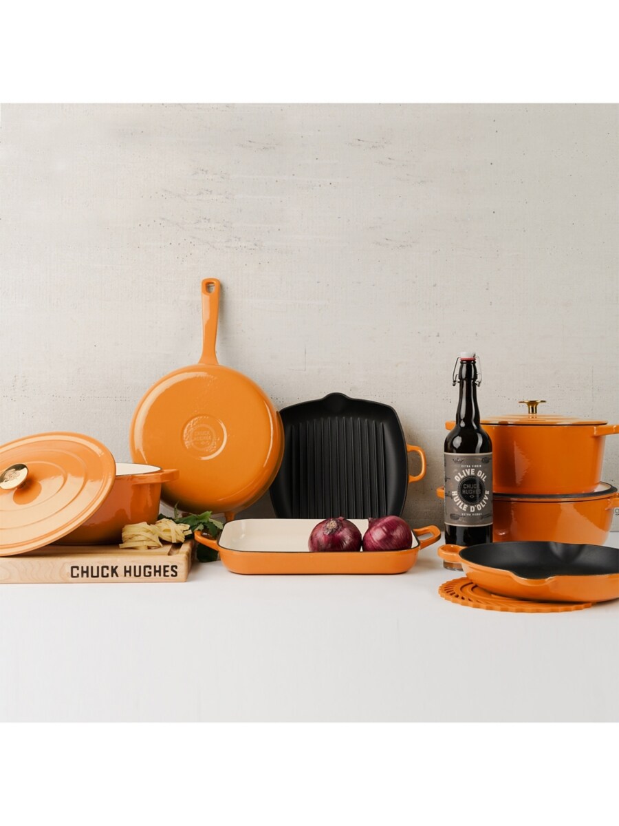- Suitable for use with silicone, wood, nylon. Metal cookware tools can be used, but be careful not to scratch the enamel surface