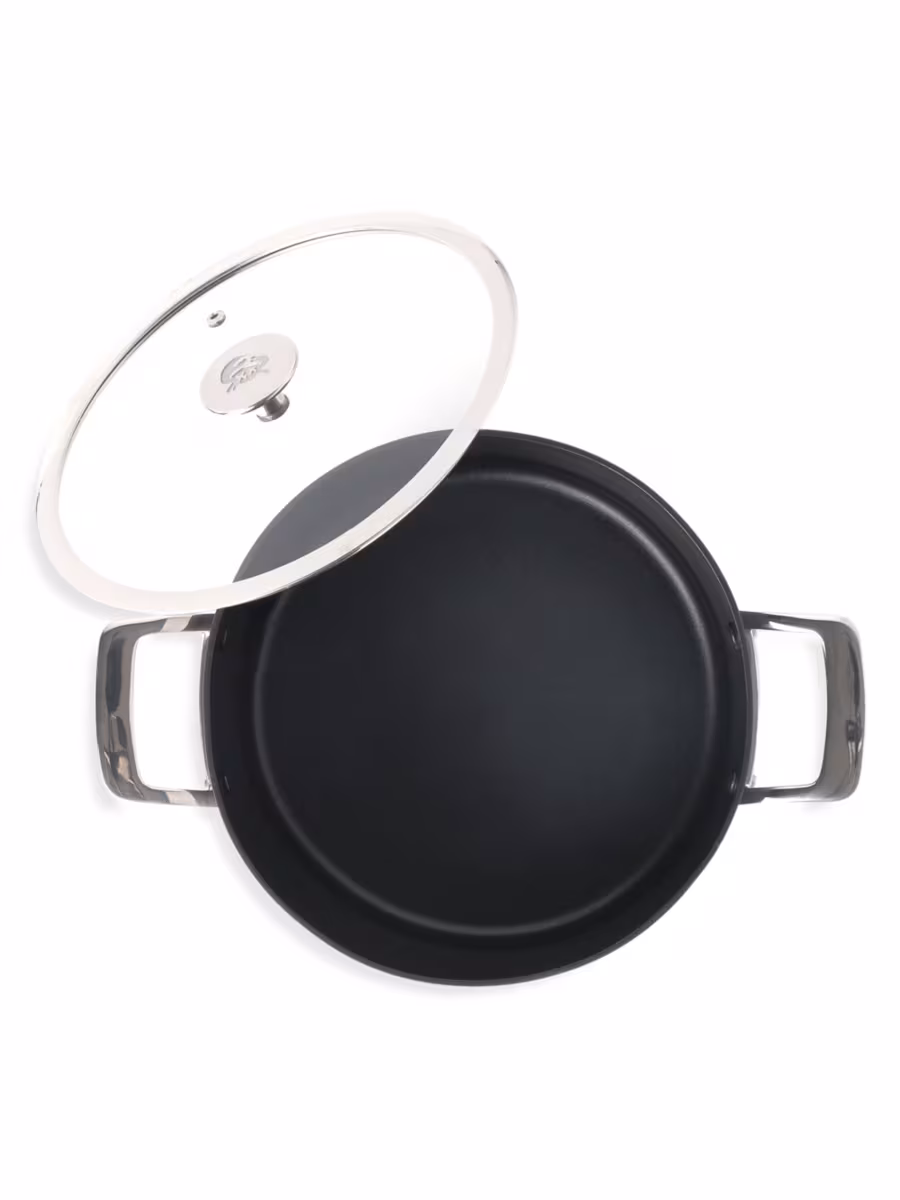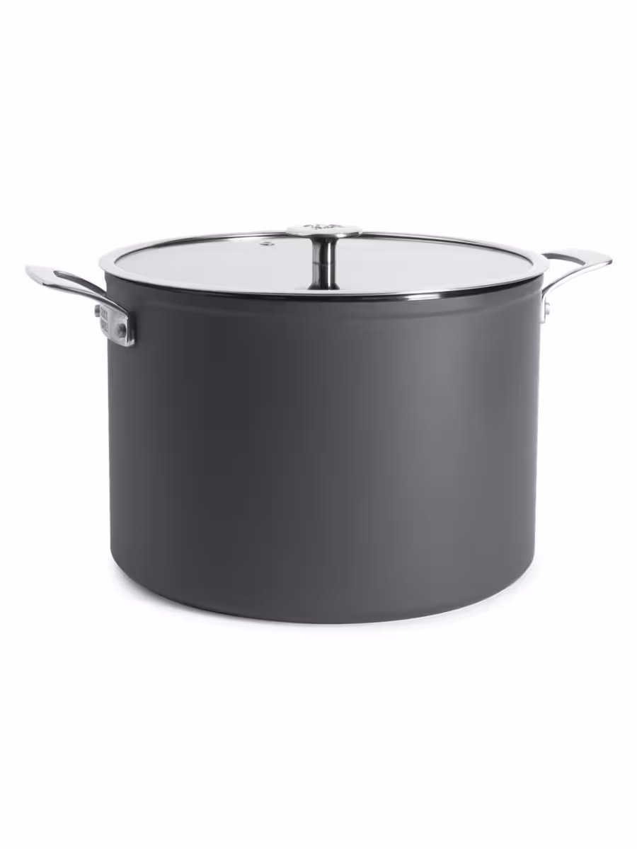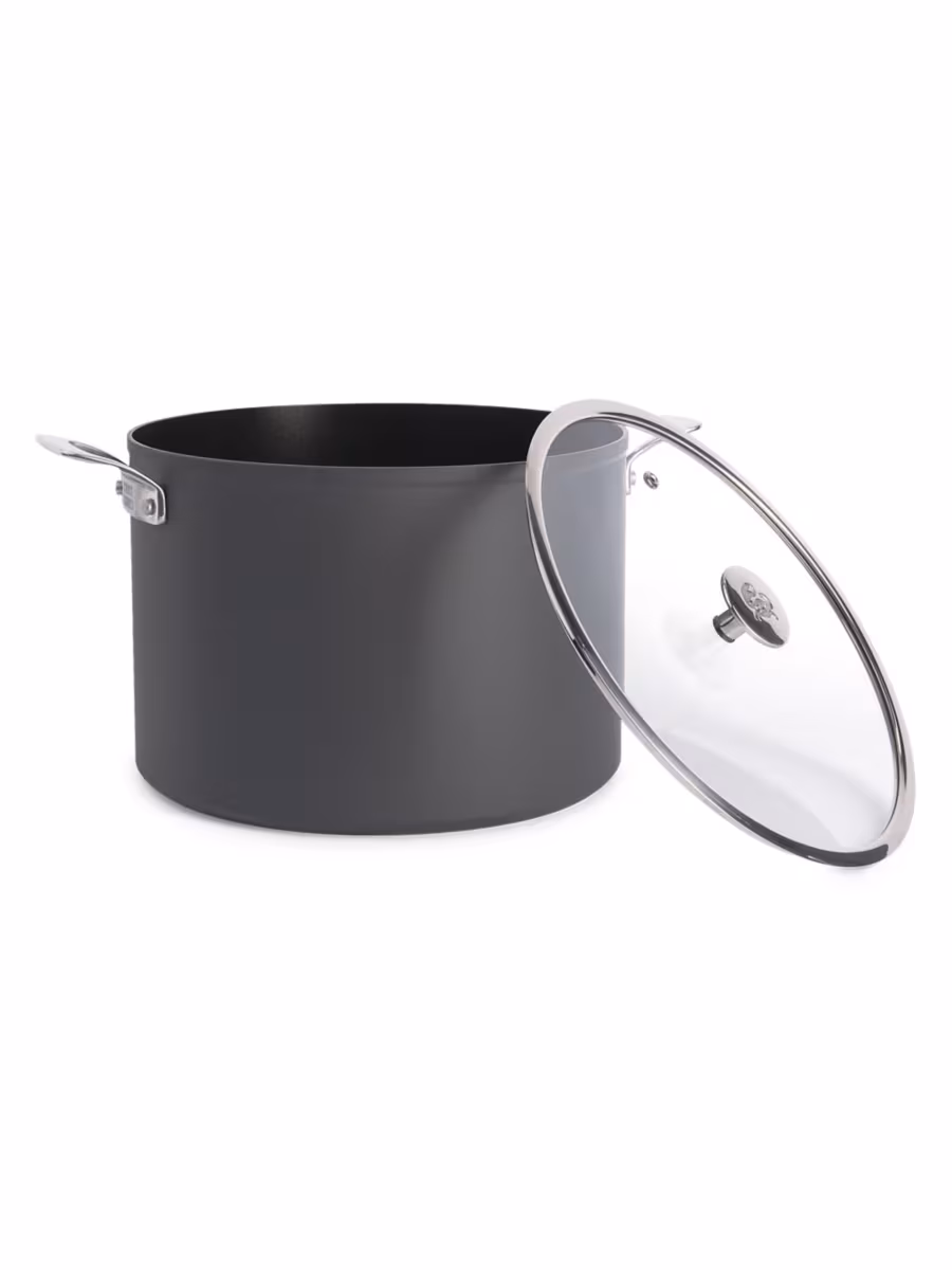 The Chuck Hughes 12L stockpot has a forged, non-stick aluminum body for durability and performance, paired with a tight-fitted tempered glass lid. The stockpot is perfect for cooking a range for stews, sauces, pastas, chilis or even steamed vegetables and seafood. The options are limitless! Suitable for all stovetops including gas, electric, halogen, ceramic and induction.