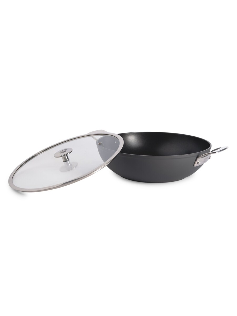 The Chuck Hughes 4.5L dutch oven has a forged, non-stick aluminum body for durability and performance, paired with a tight-fitted tempered glass lid. The Dutch oven is easily the most versatile cooking vessel and is ideal for braising meats, cooking stews, boiling water for pasta or even deep-frying chicken. Suitable for all stovetops including gas, electric, halogen, ceramic and induction.