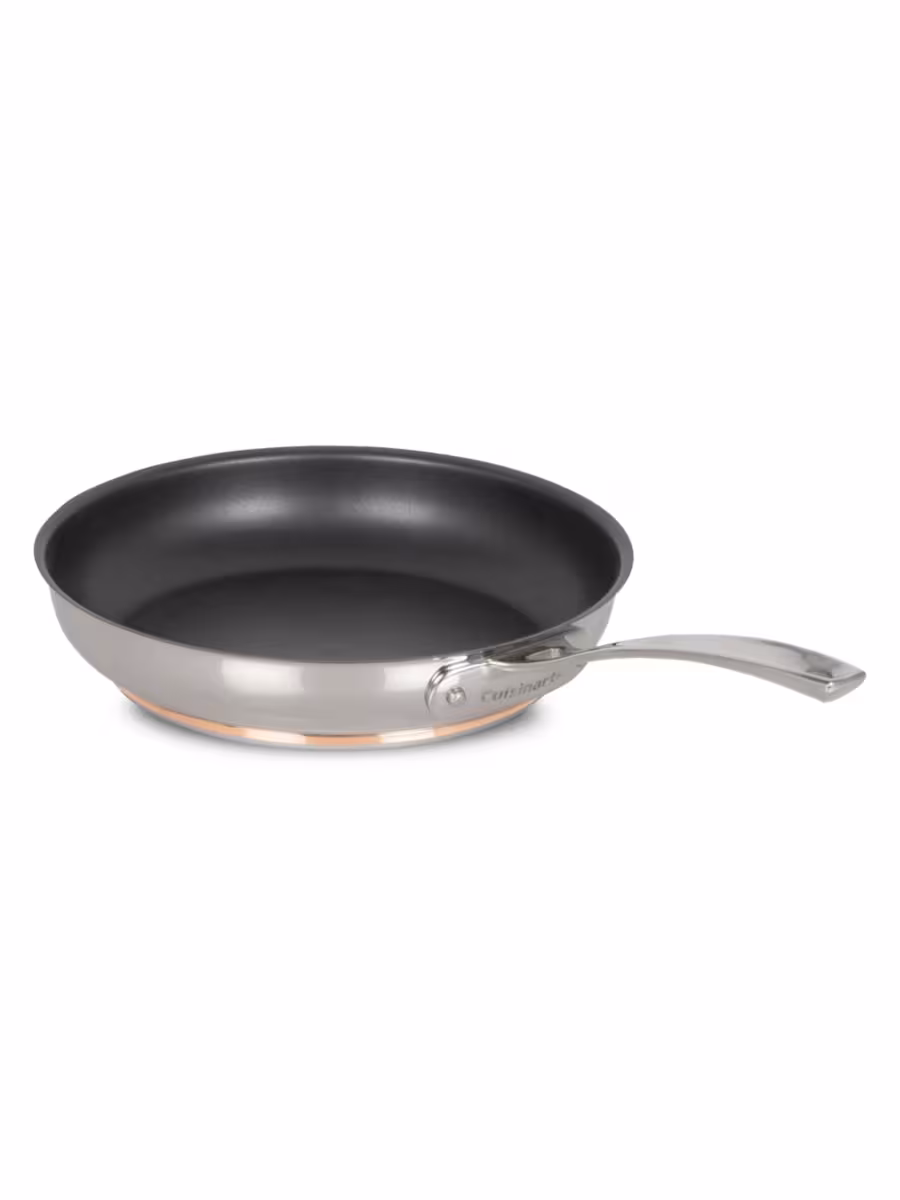 - Copper in the base heats the pan quickly and evenly eliminating hot spots