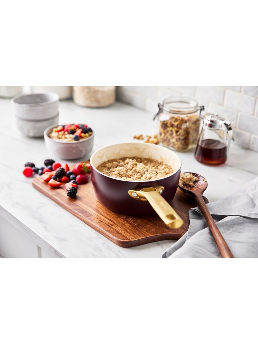 World-class tech meets minimalist style in GreenPan Reserve. Featuring a sun-soaked finish, this set is more than good looks. The duo forged hard-anodized aluminum construction makes it extra tough and scratch-resistant while also promoting even heat distribution. Each piece features Thermolon Minerals Pro healthy ceramic nonstick coating, featuring layers of diamonds to make it ultra-durable and heat-responsive (all free of PFAS, PFOA, lead, and cadmium).
