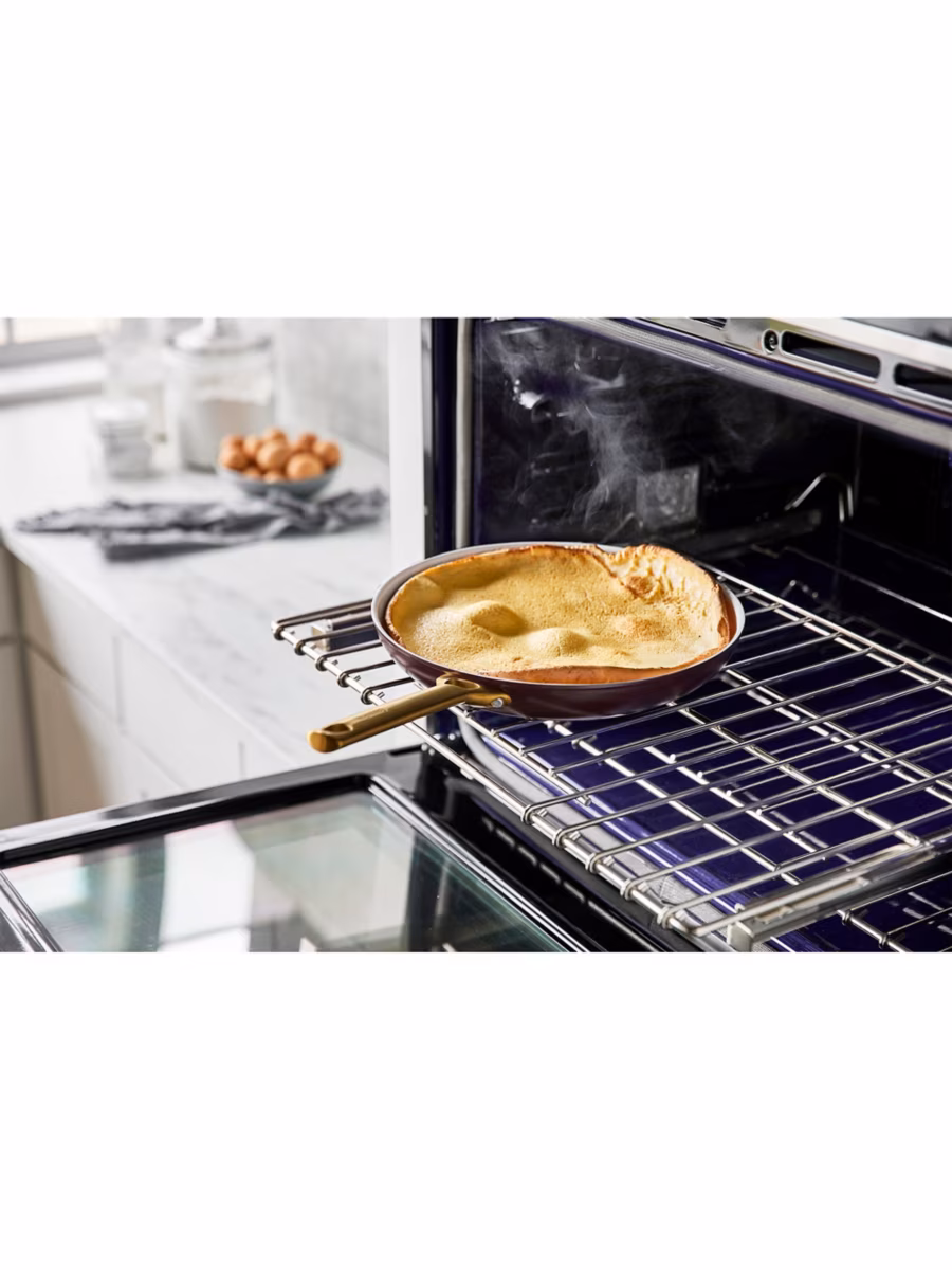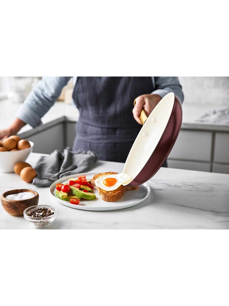 The meal possibilities are endless—flavourful frittatas, tender stews, and perfectly seared seafood are just the start. Reinforced with diamonds, durable Thermolon healthy ceramic nonstick coating heats evenly and cleans up easily every time manufactured without the use of PFAS, PFOA, lead, or cadmium—the cookware won’t release toxic fumes, even when overheated. Duoforged Armored Bodies (hard anodized twice) deliver extraordinary strength and scratch resistance durable forged base offers uniform heat distribution and won’t ever wobble or warp. Tempered glass lids (oven safe up to 425°F) let you keep an eye on things without losing steam. Goldtone stainless steel handles are matte-finished for easy gripping.