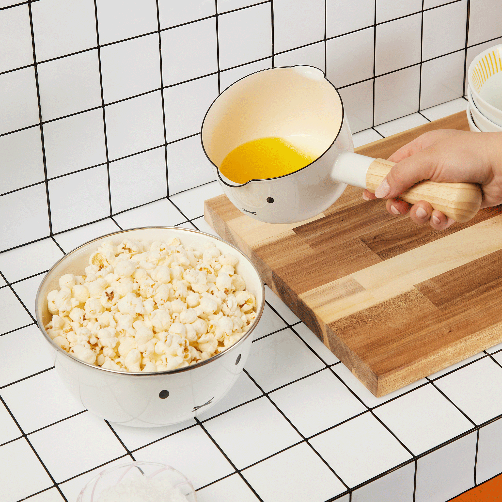 Make a perfectly sized cup of tea or warmed milk with the Rabbit Milk Pan. The all-white pan features a simplistic design of Dick Bruna’s beloved Dutch storybook character. If you’re wondering what the difference between a milk pan and a sauce pan is, we can help: While both can heat up milk with ease, a designated milk pan has an even heat distribution and that makes heating up (without burning) milk a breeze. One side of the Milk Pan features Miffy with her eyes open, while the other shows her with her eyes closed—a playful nod to warm milk's sleep-inducing reputation. Safe for use on induction, gas, and electric stovetops. Freezer-safe. The Miffy Milk Pan measures 3h x 10w x 5.5"d. Holds 27oz. Hand-wash only.