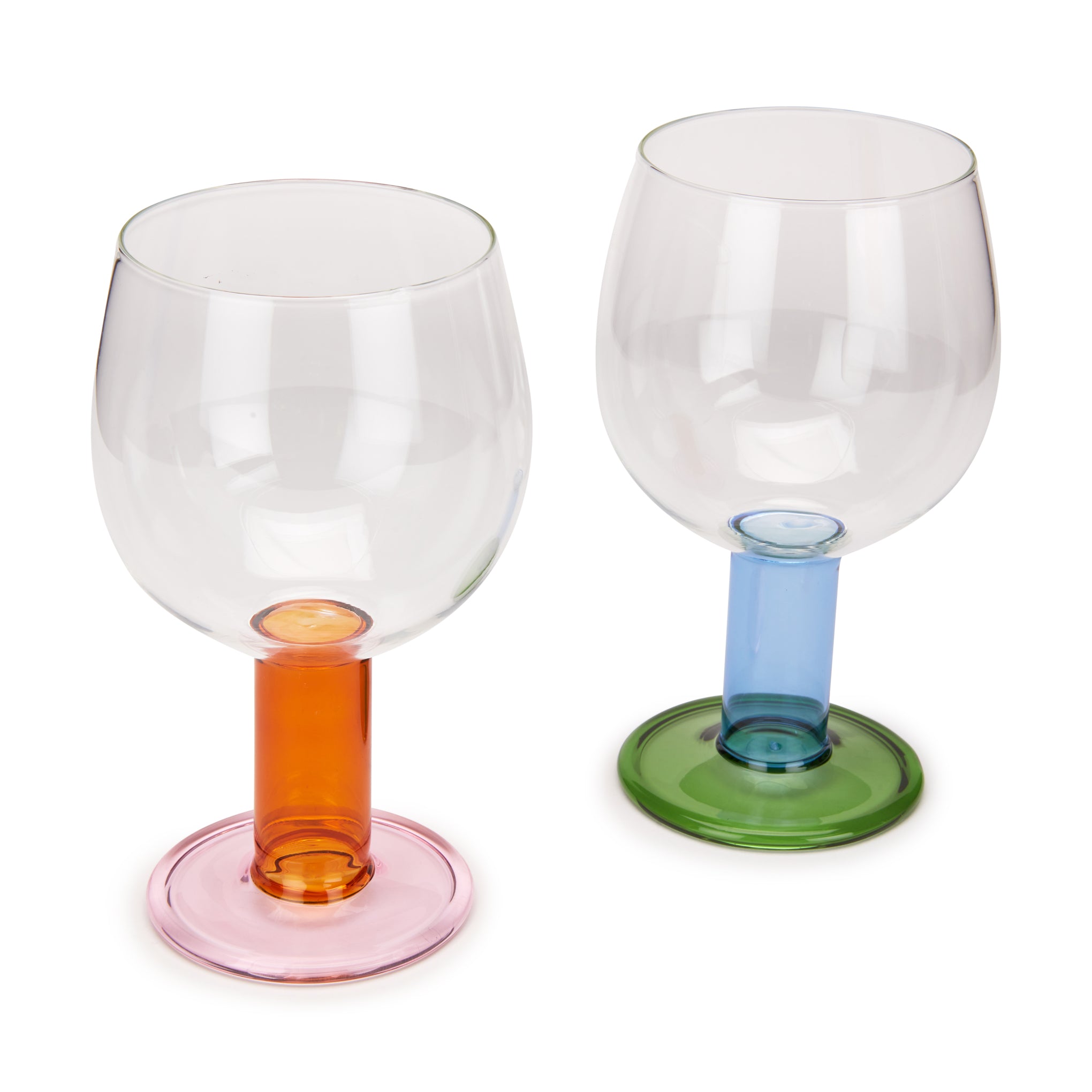 MoMA Exclusive: Originally designed in 2006 and now reintroduced, these glasses are bound to steal the spotlight at your next soirée. Created by Bodum, each glass showcases a playful blend of colorful bases and elegant glass vessels, perfectly marrying style and sustainability. Elevate your wine-tasting experience and impress your guests with these eye-catching and environmentally conscious wine glasses. Made from borosilicate glass. Dishwasher-safe. Sold as a pair. Measures 6.5h x 4"diam. and holds 15oz.
