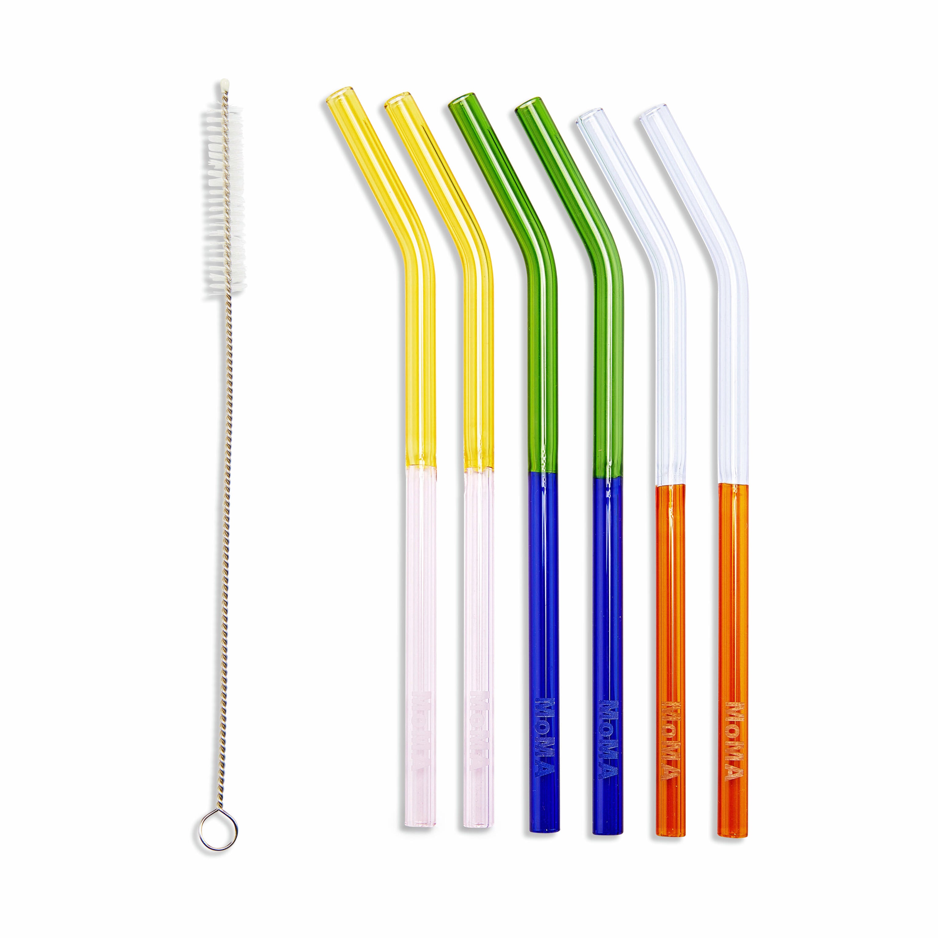 Made from true-colored borosilicate glass, this set of six Two-Tone Straws features colors that celebrate MoMA in three different two-tone combinations: yellow/pink, green/blue and lilac/orange. Each MoMA Two-Tone Borosilicate Glass Straw measures 7.5"l. Includes cleaning brush.