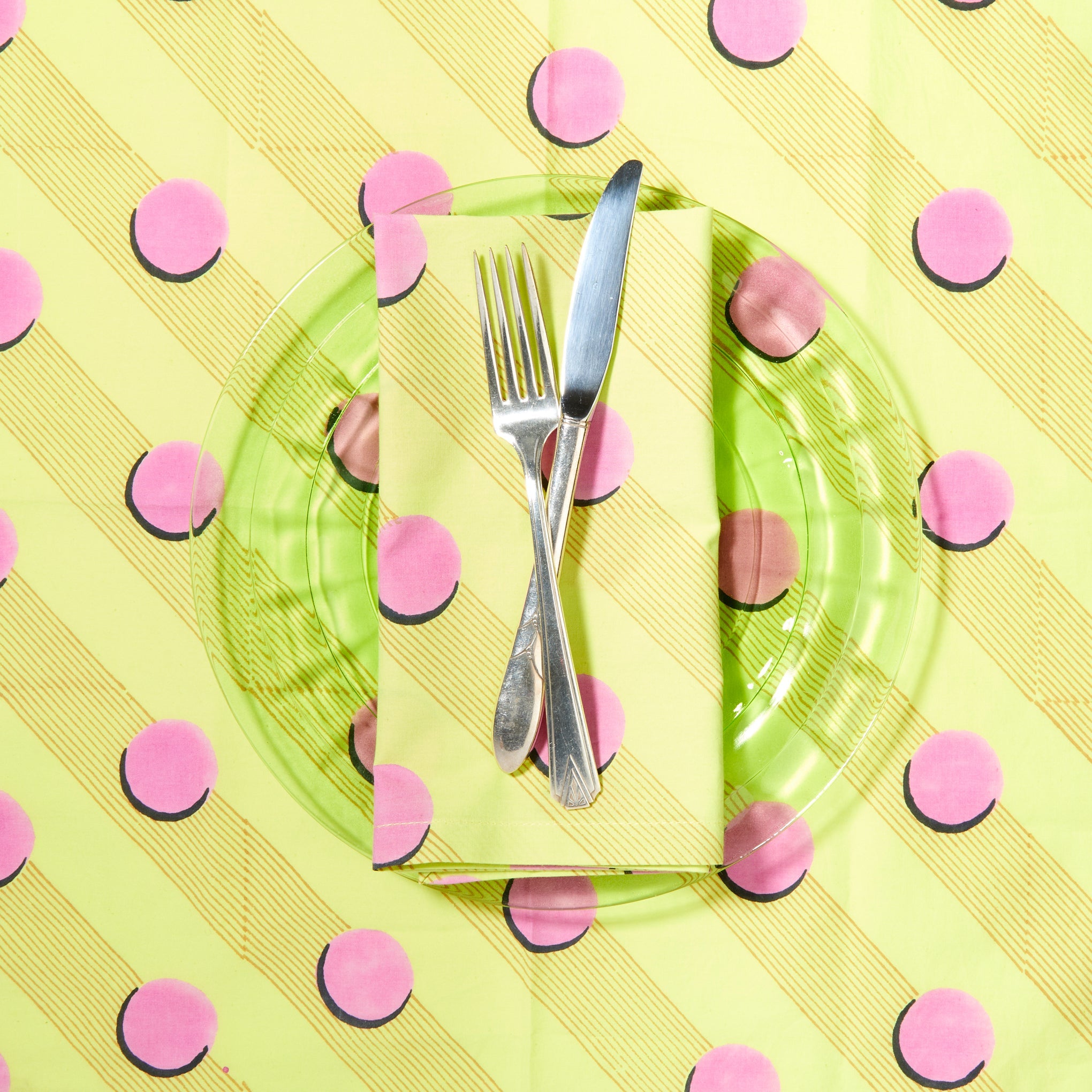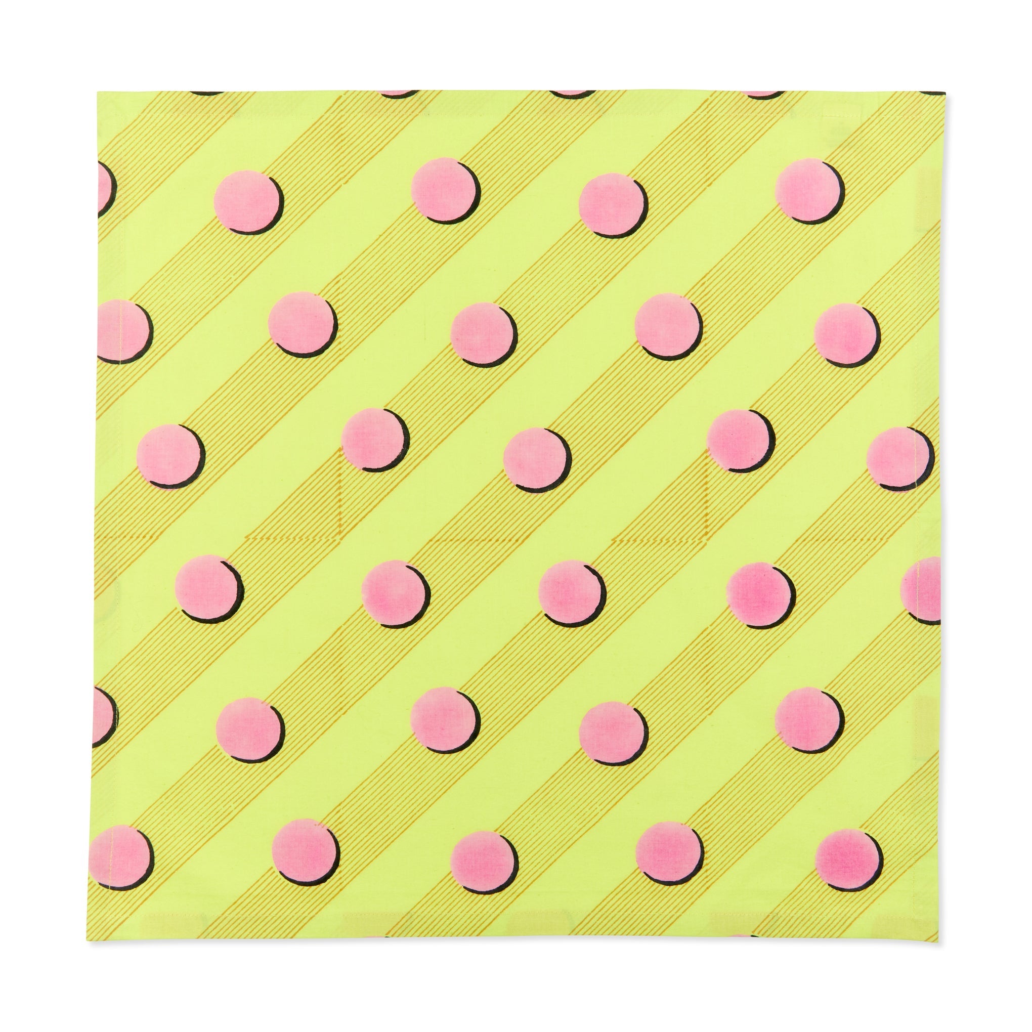 MoMA Exclusive From LA-based, women-owned brand Block Shop comes this set of reusable Tennis Napkins. Made from 100% lightweight organic cotton, the napkins feature patterns that are made with a wooden block print. The process involves tracing the design onto a wooden slab which is then carved by hammer and chisel into a printing block. The block is then printed meticulously by hand using soft, AZO-free non-toxic pigment. The dynamic polka-dot and diagonal striped print evokes Memphis and Pop art, making the napkins a dynamic addition to your place settings. Because the napkins are printed by hand, variations in the print may occur, making each one beautifully unique. Each Block Shop Tennis Napkin in this set of four measures 18l x 18”w. Machine wash cold, tumble dry low.