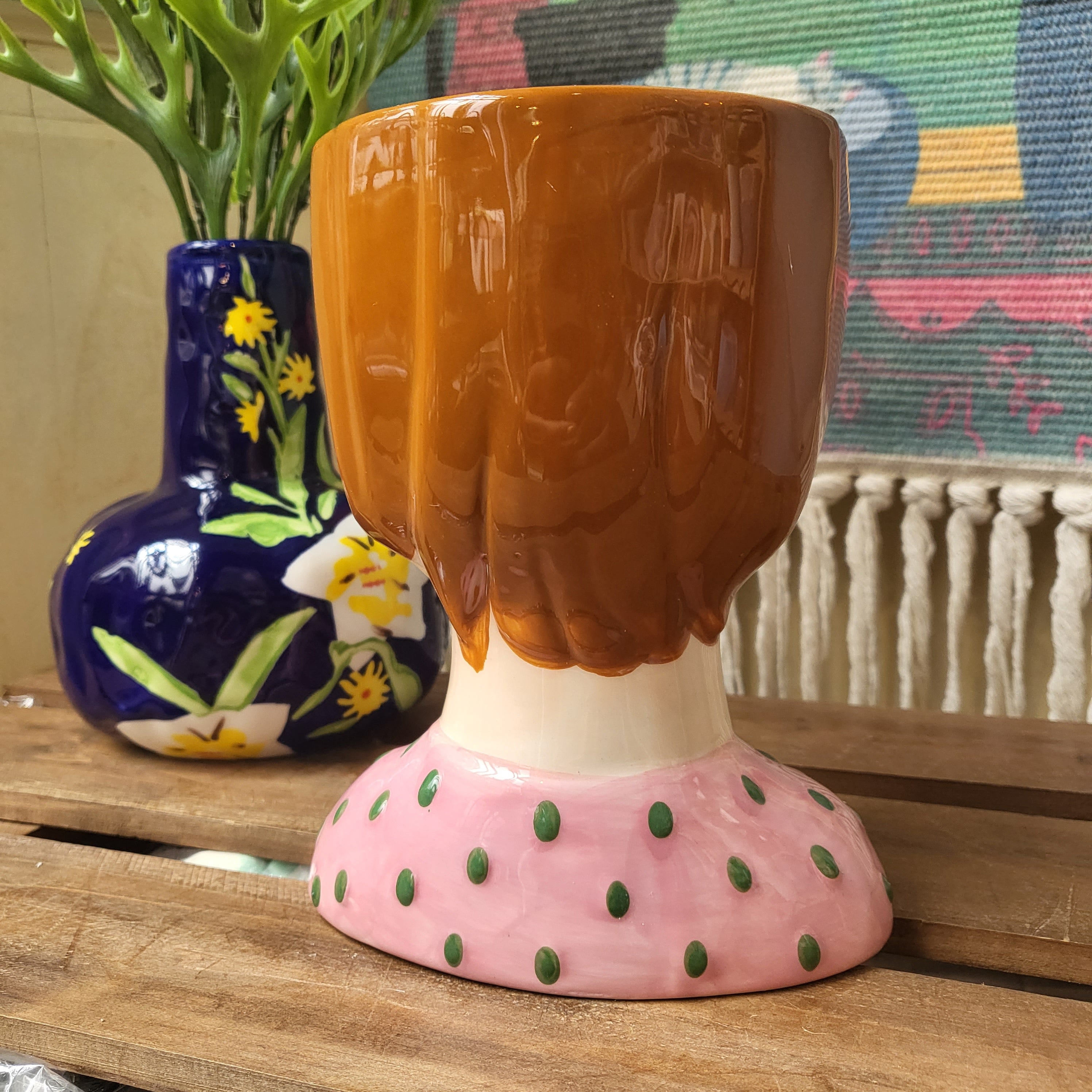 Glazed ceramic, hand painted lady portrait