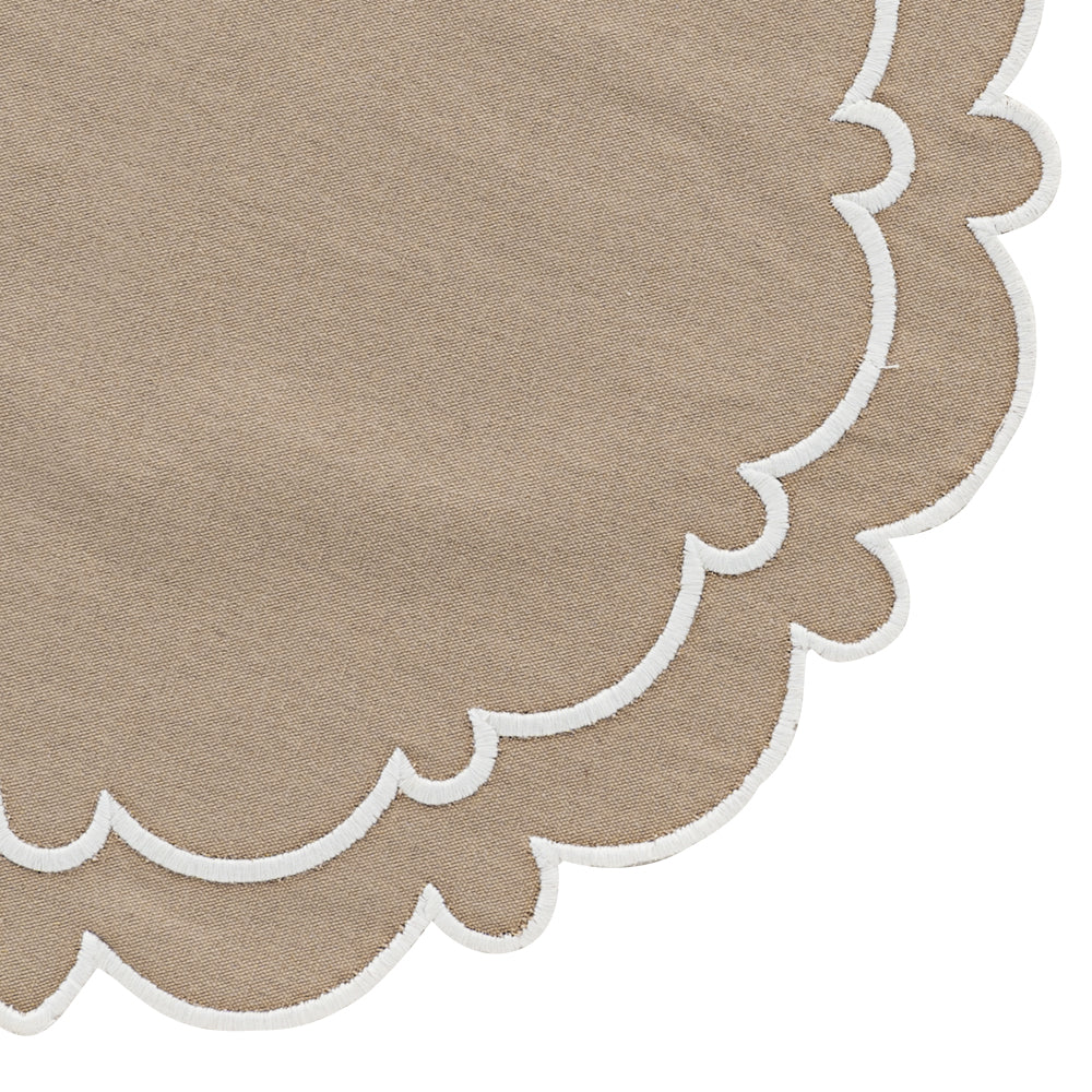 - Brighten up your dining table with these stunning scalloped placemats. Crafted from cotton, they combine durability and elegance. They are available in green, beige, and red.