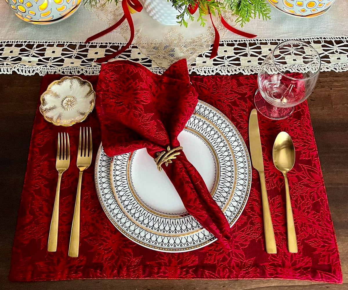 - Enhance your dining experience with these luxurious cloth placemats. Crafted from 100% cotton, they offer a perfect combination of durability and elegance. The Ruby red hue adds warmth and sophistication to your table, making them ideal for both daily use and special occasions.