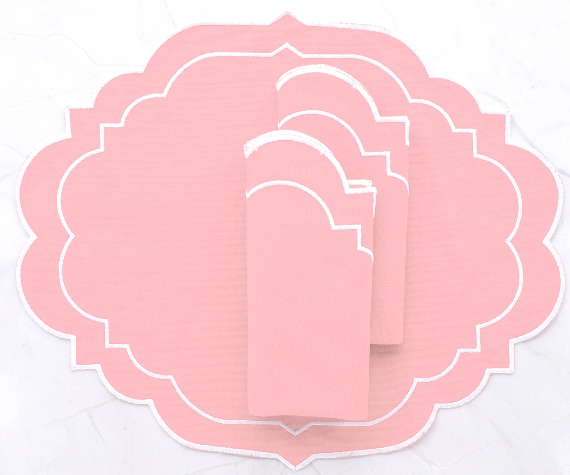 - Bring elegance and charm to your dining table with our Light Pink Oval Scallop Edge Placemats